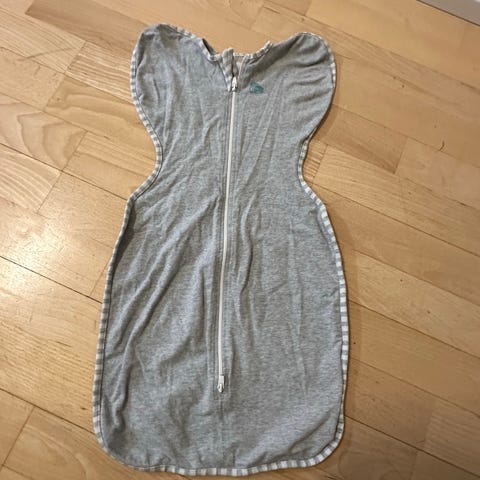 Lämmin Love to Dream Swaddle Up unipussi, josta saa kädentiet auki. Yläosa yksinkertaista kangasta, alaosa topattu. Koko L (8,5-11 kg). Siisti kunto, muutama ommel purkautunut käsistä (katso kuvat).
