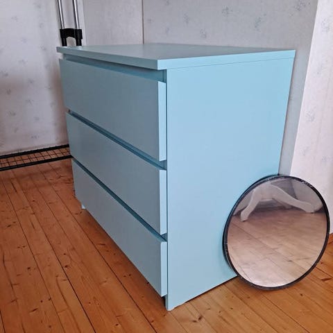 Muutaman vuoden ikäinen kaksilaatikkoinen Eket -lipasto koivujaloilla. Ehjä, mutta käytön jälkiä (naarmuja, tahroja) löytyy jonkin verran.