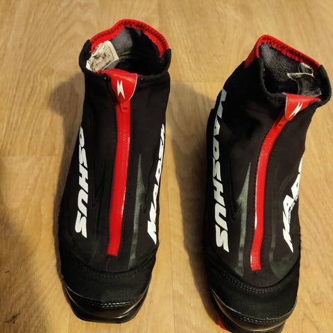 Nyt olis koreamman sorttista monoa tarjolla! Madshusin Athena monot. Koko 37. Pohjallinen sen verta napakasti paikallaan, etten arvannut irti repiä mittaamista varten. Ilttiin kokolappuun merkitty 22 cm. Kaikki kiinnitysmekanismit ehjät ja toimii. Nnn-siteisiin. Tukeva nilkkaosa.