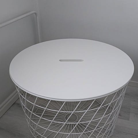 Annetaan muuton alta pois pieni yöpöytä. Pinnassa hieman jälkiä (kuva). Nouto Patterinhaasta.