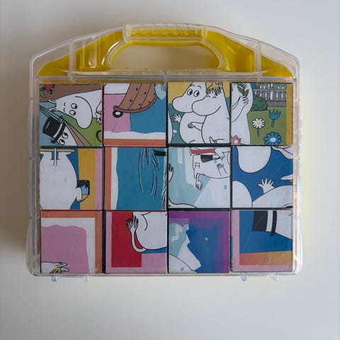 Clementoni Moomin Cubicubes palapeli, jossa on 12 palaa. Palapeli on pakattu kantokahvalliseen muovilaukkuun ja sopii yli 3-vuotiaille lapsille. Kuusi eri kuvaa.