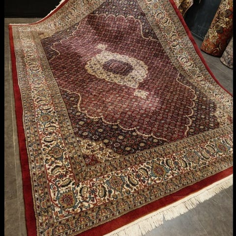 Erittäin hyväkuntoinen ja hieno Tabriz Mahi-tyylinen aito villamatto.