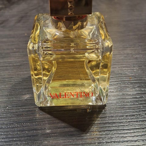 Valentino Donna Eau de Parfum pullo, lasipullo, kirkas ja kullanvärisillä yksityiskohdilla. Sitä on jäljellä noin 25ml!! Ihana tuoksu🥰