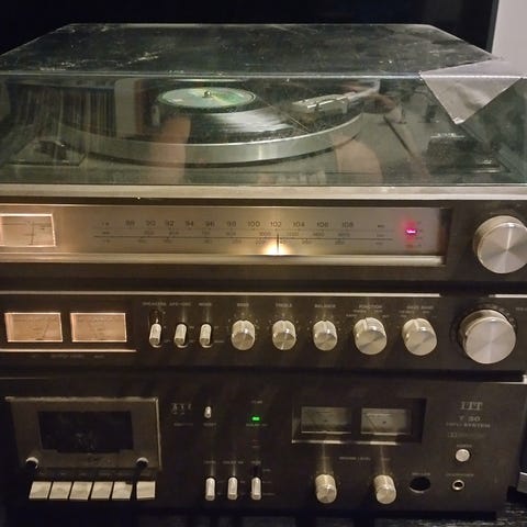 Levysoitin pitää pyöriessään naksuvaa ääntä; jotain vikaa. Levylautanen aloittaa pyörimisen, kun neulan nostaa lähelle.