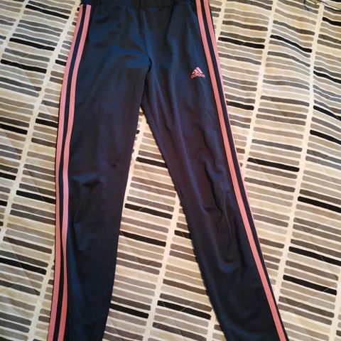 Lähes käyttämättömäksi jääneet Adidaksen leggingsit, joissa on pinkit raidat. Haara-lahje mitta on 72 cm.
