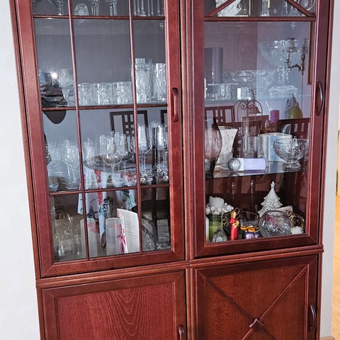 Hyväkuntoinen ja siisti lasivitriini. Vitriinin katossa reikä esimerkiksi lampulle. Vain nouto.