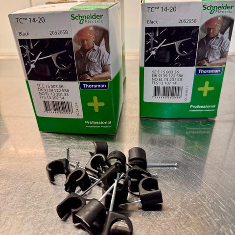 Schneider Electric TC 7-10 reilu 100kpl musta, TC 14-20 valkoisia 40kpl sekä 50kpl valkoisia Thorsman TK 7-10 johtokiinikkeitä.