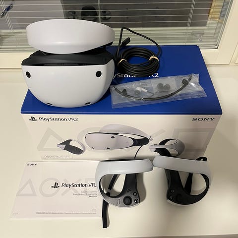 Playstation vr setti, ohjaimet, kamera ja peli. Ainoa tarvittava asia settiin on itse pleikkari.