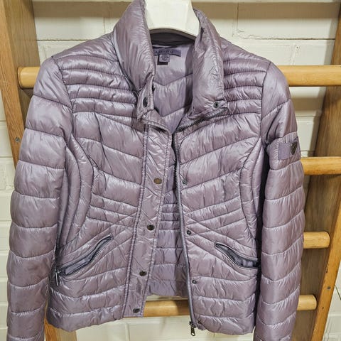 Myynnissä siistikuntoinen, kevyt naisten toppatakki, jossa on kaksipuolinen pinta: toinen puoli kukkakuosilla, toinen yksivärinen (harmaa). Sopii kevääseen, syksyyn ja leutoihin talvipäiviin.