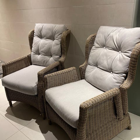 Myydään Artwood rottinkituolit valkoisine istuin päälysteineen. Istuintyynyissä satunnaisia käytönjälkiä. Tuolit aina olleet lasitetulla terassilla. Istuintyynyt otettu talveksi lämpimään sisätilasäilytykseen. Yhden tuolin jalkaosa musta ja ainakin yhdessä tuolissa jalasta puuttuu punos. Katso kuvat. Auringon aiheuttamaa haalistumaa joissakin tuolin osissa mutta tuolit erittäin hyväkuntoiset ja ihanat edellen. Myydään muuton alta. En myy yksitellen. Hinta 650€ kaikki yhteensä.