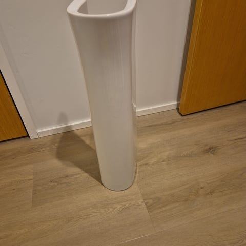 Käytöstä poistettu pesualtaan jalka, valkoinen, korkeus n. 68 cm