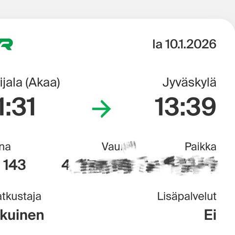 Myydään opiskelijalippu 19.1 klo 18.10-19.49 Jyväskylä-Tampere