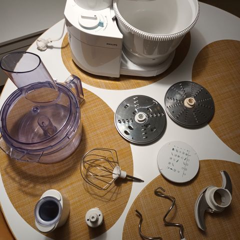 Kaikki kuvan muut osat käyttämättömiä, paitsi vispilä, taikinakoukut, sekä taikinakulho.