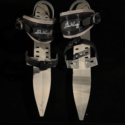 Pituus 45cm, kääntösäde 28 m, teroitetut, Sandvikin ruostumatonta terästä. Siteet on asennettu paikkalleen. Luisteltu yksi kausi. Ei postitusta.