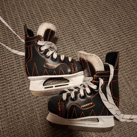 Jääkiekko lasten luistimet, koko 28. Väri mustavalkoinen. Käytettyjä jääkiekkoluistimia lasten käyttöön. CCM.