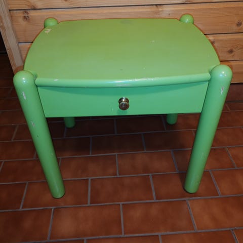Keltainen yöpöytä. Muurame.