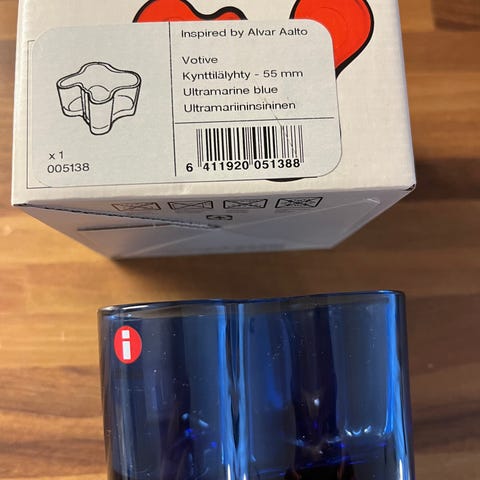 Myydään uusi käyttämätön Alvar Aallon suunnittelema kynttilälyhty. Väri merensininen, korkeus 55 mm. Nouto tai postitus.