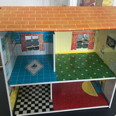 Suomi 70-luku nukkekoti 12cm peltinen vintage hella uuni Peltityö Åkerman Ky