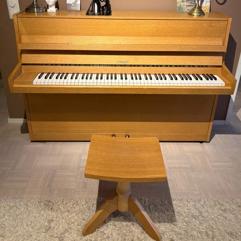 Pystypiano Hellas tammi puukehyksellä, kaksi pedaalia. Mukana säädettävä pyöreä pianotuoli, jossa on puinen runko ja verhoiltu istuin. Piano ollut kahden nuoren tytön vähäisessä käytössä, nyt useamman vuoden käyttämättä. Piano ostettu edelliseltä asukkaalta, joten ollut samassa taloudessa kaikki elinvuodet. Sarjan:o on 40001 jos siitä saa vinkkiä pianon todelliseen ikään. Meidän taloudessa ollut vuodesta 2007 asti.