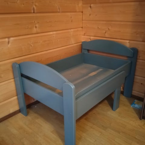 Kuvan mukainen jatkettava sänky sekä siihen kuuluva jatkettava patja. Sängyssä vähän normaalia kulumaa, todella siisti kuitenkin eikä tarroja ym. Patjan päällä ollut aina suojus.