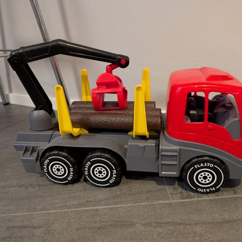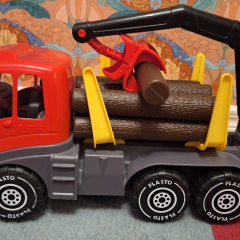 Myydään meille uutena tullut Plaston tukkirekka. Kovasti tykätty ja nyt valmis siirtymään uudelle leikkijälle. Tällä saa kivoja leikkejä aikaan. Täysin ehjä, joitakin käytön jälkiä / naarmuja. Tästä kuva erikseen. Kaikki 8 tukkia tallella.
