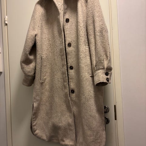 H&M villakangastakki (villaa 51%). Kokolapussq lukee xxs, mutta on oversizemallia ja olen itse käyttänyt tätä s-m kokoisena. Takissa napit edessä. Ulkopinnassa paikoin vähän nukkaa (näkyy kuvissa), sisävuori siistissä kunnossa. Yleisilme edelleen siisti.✨