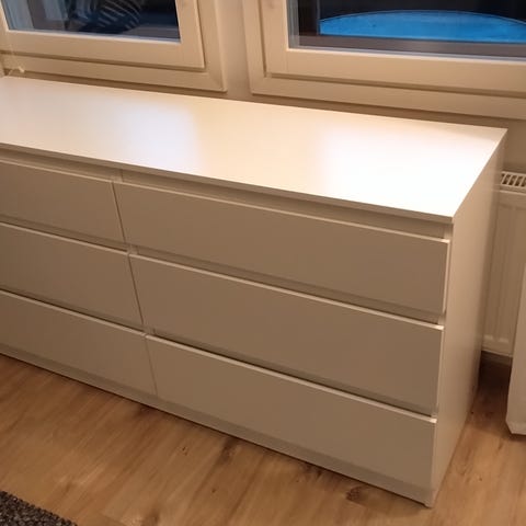 Ikea Malm lipasto, valkoinen, 3 laatikkoa.