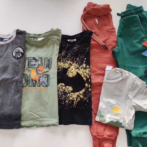 Farkut uudenveroisia, olleet todella vähällä käytöllä. Muut vaatteet siistissä käytetyssä kunnossa, kunto mielestäni huomioitu hinnassa.