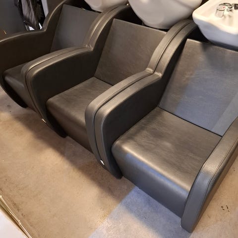 2kpl juuri käytöstä poistettuja hierovia pesupaikkoja. Luonnollisesti joitakin kulumia ja värjäytymiä, jotka todennäköisesti lähtevät oikealla puhdistuksella. Vaihdettavat selkänojasuojat.