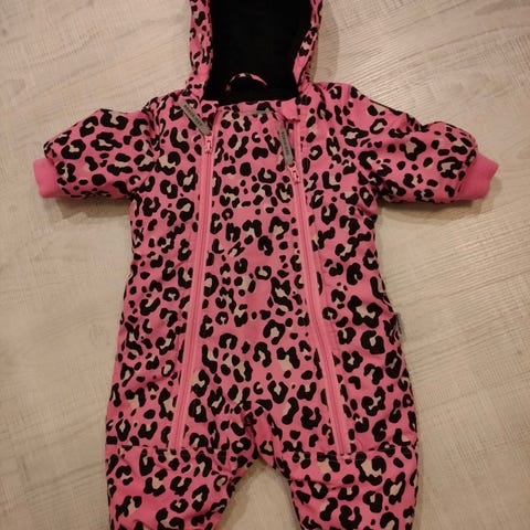 Uudenveroinen softshell-haalari, ei vuoria. Koko reiluhko, menee helposti 80-kokoiselle ja varmaan isommallekin. Hyvä haalari kevääksi esim. kauppareissuille tai vaunuihin. Vain nouto.