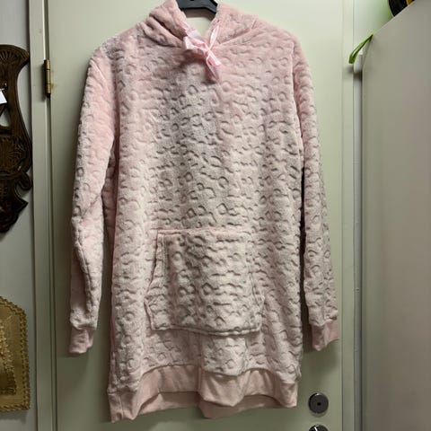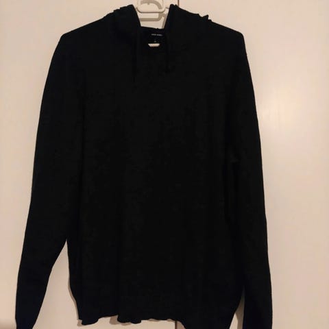 Oliivin vihreä huppari, edessä kiristysnauhat. Kokolappu leikattu pois mutta todennäköisesti L koko.