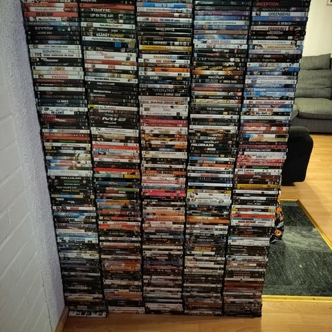 Reilu 1100kpl leffoja, ei ole käyty läpi missä kunnossa levyt tai kotelot on.