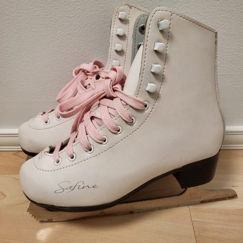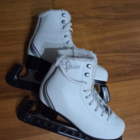 Myydään erittäin vähän käytetyt kaunoluistimet. Terät hyvässä kunnossa, ainoastaan jotain mustaa väriä saanut luistimet sivuun.
