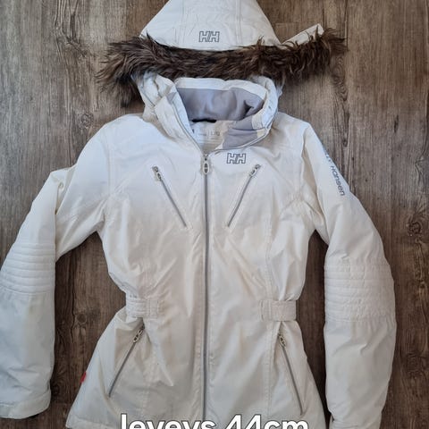 Vedenpitävä, kainaloissa tuuletusaukot, lumilukko, hyvät taskut.