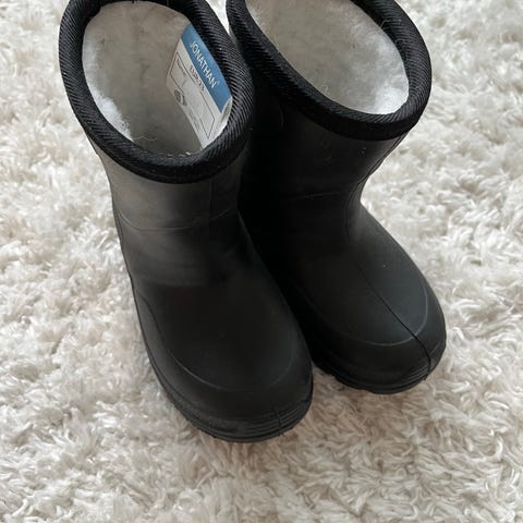 Jonathan mustat lämpösaappaat koossa 23. Talvikumisaappaat on hyvässä kunnossa ja villasekoitevuori ehjä myös kantapäistä. Sisämitta löytyy kuvasta.