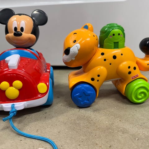 Fisher-Price lasten lelut sisältävät erilaisia värikkäitä ja muovisia leluja, jotka sopivat lasten käyttöön. Lelut ovat kooltaan pieniä ja suunniteltu lapsille leikkiä ja kehittää motorisia taitoja.