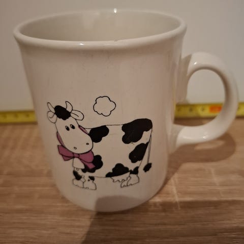 Myydään 3 kpl.musta lehmä aiheiset kahvimukit itsellä olnut koristeena hyllyllä