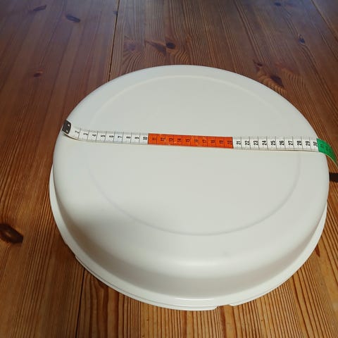 Sisäkulhon vetoisuus 2,5 L. Ruokaa voi säilyttää myös ulommassa vaaleassa kulhossa, jonka vetoisuus on 3,1 L. Siihen sopii valkoinen pehmeämpi kansi.