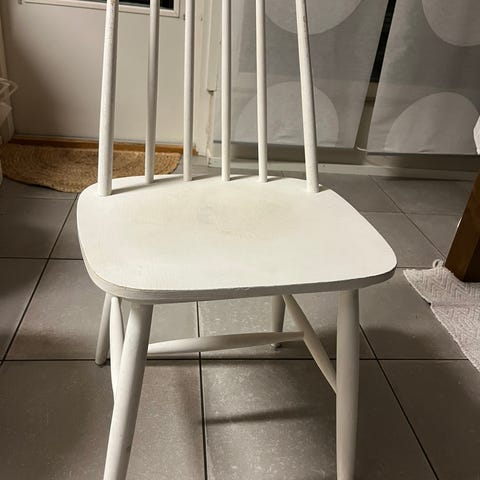 2 pinnatuolia, toisessa istuinosa haljennut, mutta kestää istumisen edelleen. Molemmat tuolit yhteishintaan.