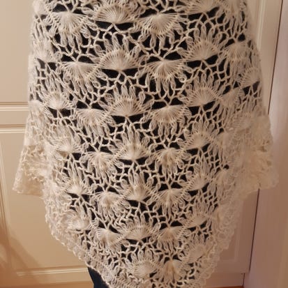 Käsinvirkattu todella hyväkuntoinen , pari kertaa pidetty ruskea poncho / hartiahuivi.