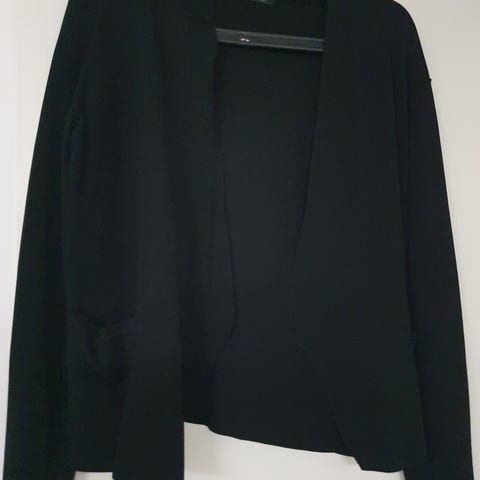 Pierre Cavallo uudenveroinen, kerran pidetty musta neuletakki, jossa edessä pitsiä ja helmiä.