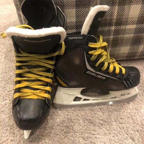 Myydään yhdellä lapsella yhden kauden käytössä olleet luistimet Bauer Supreme S35, koko 3 eli vastaa kokoa 36. Sisämitta n. 22,6cm. Lesti D (normaali/leveä). Sopivat hyvin ulkojäille ja koulun liikuntatunneille, myös aloitteleville kiekkoilijoille.