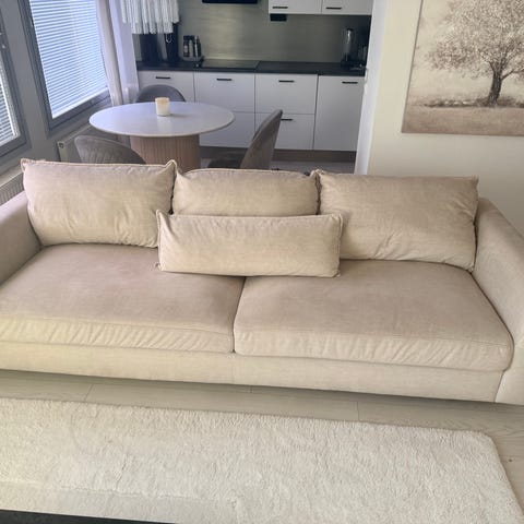 Myynnissä olevat sohvamme on pesty ammattilaisen toimesta, ammattikäyttöön tarkoitetuilla pesureilla ja desinfioituja pesuaineita käyttäen. Lisäksi sohviimme on tehty perusteellinen ludetarkastus. TONIIN VOIT LUOTTAA!!! Kysy tarvittaessa lisätietoja. Ostamme ja myymme ainoastaan sohvia joissa istuin ja selkätyynyjen kankaat ovat irrotettavissa pesuun. Näin ollen pystymme takamaan myyntitilanteessa myös itse tyynyjen puhtauden kankaiden alta. Meille tärkeintä ei ole sohvien määrä, vaan niiden laatu. Emme osta / myy lainkaan uutena pilkkahintaisia nitinati sohvia.