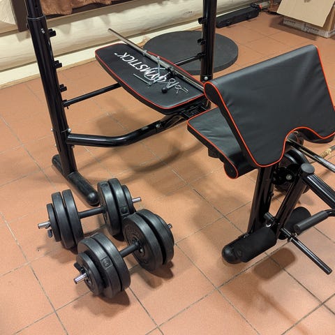 Myynnissä kuntokeskus,vähällä käytöllä ollut. Painopakka 70kg,sisältää myös soutu vetotangon. Tilan tarve n. 2m x 1m.