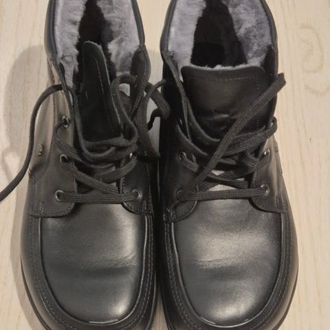 Vain muutamia kertoja käytetyt otsikon mukaiset miesten talvikengät. Ulkopinta nahkaa, sisävuori 70% villaa. Kantapäissä iskunvaimennus.
