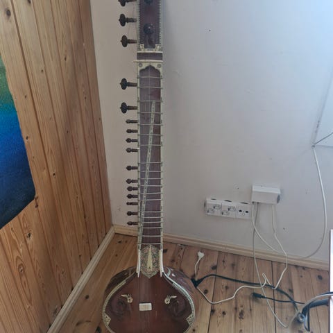Uudenveroinen sitar on ostettu soitinliikkeestä Punen kaupungista Intiasta. Sitarilla on ollut vain 1 omistaja. Sitarissa on 6 kieltä (1 viritinnuppi on koristeena) ja 11 resonanssikieltä. Mukana plektroja (mizrabeja) ja varakieliä. Kova lukittava soitinlaukku, jossa pyörät alla.