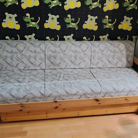 Sohva on ollut käytössä, mutta siinä on hyvin vähän kulumaa - tästä saat itsellesi sohvan ja/tai vierassängyn pitkäksi aikaa edullisesti.