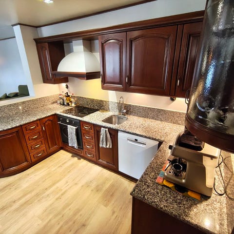 Tästä kuvien kaapit vaikka mökille tai kesäkeittiöön. Maksaa purkamisen vaivan. Jääkaappi ei kuulu pakettiin.