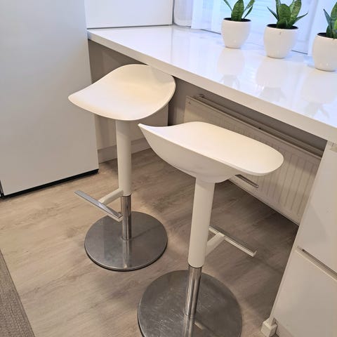 Myydään kaksi baarijakkaraa. Istuinosa samettimaista kangasta.