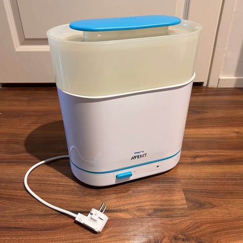 Täydellinen vauvavuosien pelastus! Tämä kaikessa yksinkertaisuudessaan sterilisoi ja myös kuivaa kaiken tarvittavan. Meillä ei enää tarvetta joten vapautuu seuraavaa vauva-arkea helpottamaan.